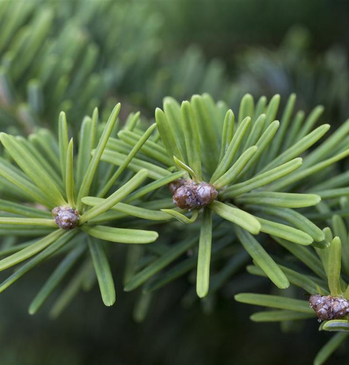 Die Niedere Balsamtanne 'Nana' (Abies balsamea 'Nana') macht immer eine gute Figur in der Gartengestaltung. Ihre Nadeln machen sie unverwechselbar. Sie sind schön dunkelgrün gefärbten. Da es sich um ein immergrünes Gehölz handelt, sorgen die Nadeln auch im Winter für farbliche Akzente.