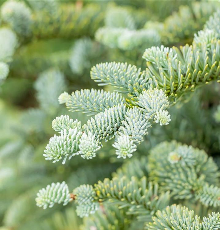Die Silbertanne 'Glauca' (Abies procera 'Glauca') ist im Einzelstand ein dekoratives Solitärgehölz. Ihre Nadeln machen sie unverwechselbar. Sie sind schön blau-grau gefärbten. Da es sich um ein immergrünes Gehölz handelt, sorgen die Nadeln auch im Winter für farbliche Akzente. Ihre Blüten, die sie von Mai bis Juni trägt, sind grün. Ab September trägt diese Konifere zylindrische, rot-braune Zapfen, die sehr dekorativ wirken.