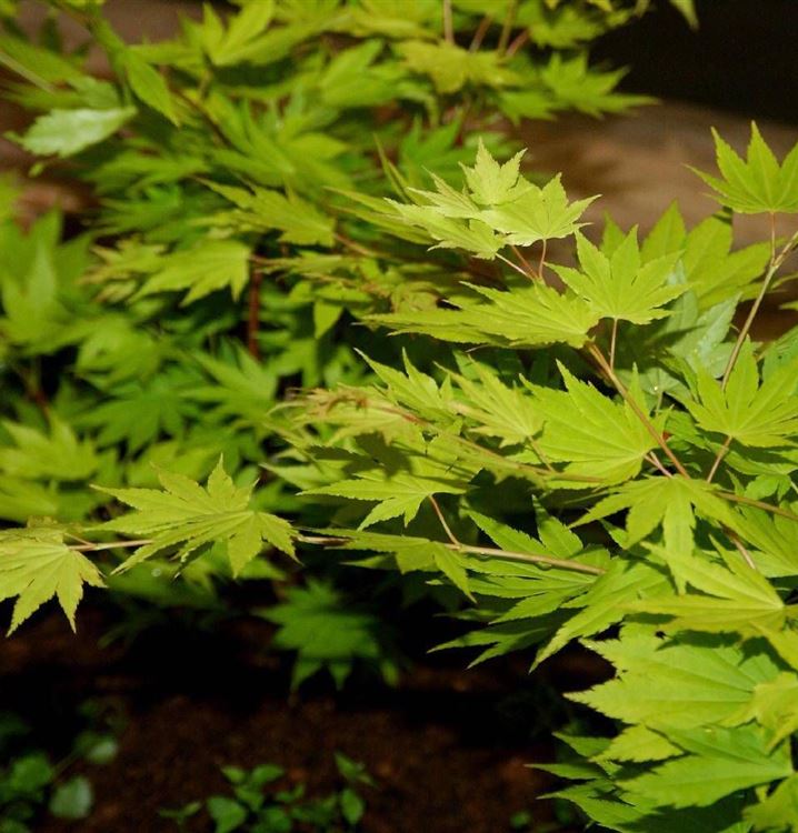In durchlässiger und humoser Erde an einem sonnigen bis halbschattigen Platz entwickelt sich der Fächerahorn 'Jordan'(s) zu einem schönen, aufrechten, strauchartigen, überhängenden Strauch von bis zu 3 m Höhe und 3 m Breite.