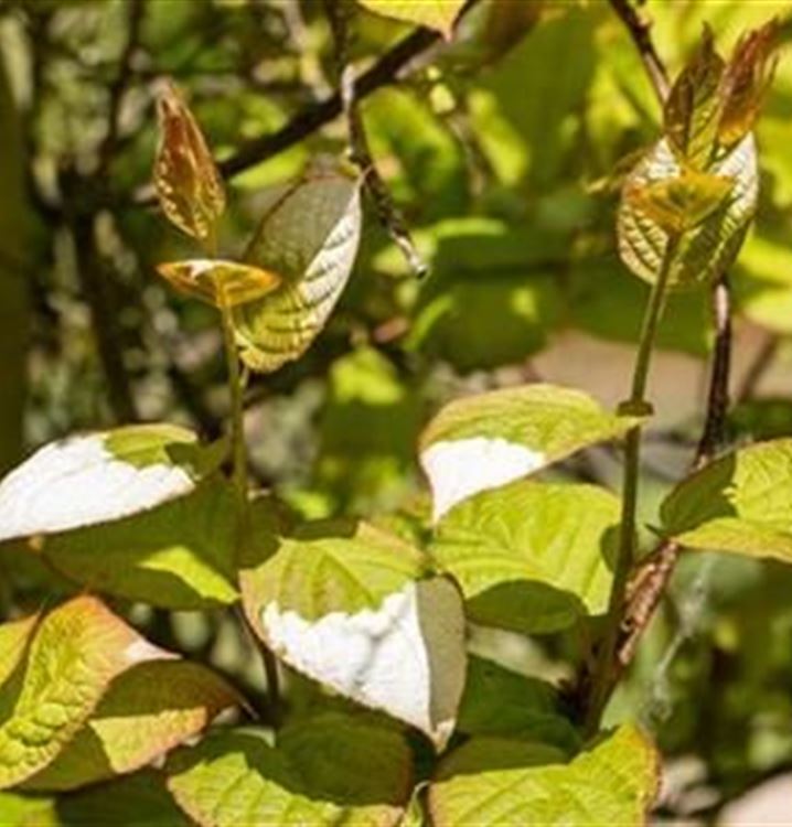3-6m; Blüte: weiss, Mai/Juni; Blatt: weiss/rosa, sonnig