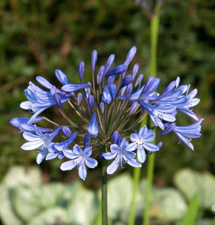 Die Blütezeit beginnt für die Schmucklilie 'Dr. Brouwer' ab Juli. Dann trägt sie Dolden mit sternförmigen, leuchtend blauen Blüten. Bis September hält die Blüte an.