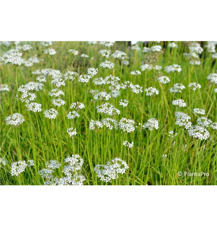 Die Blütezeit beginnt für den Schnittknoblauch ab Juli. Dann trägt er Dolden mit, weissen Blüten. Noch dazu verströmen sie einen angenehmen Duft. Bis September hält die Blüte an.