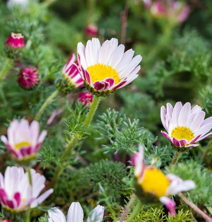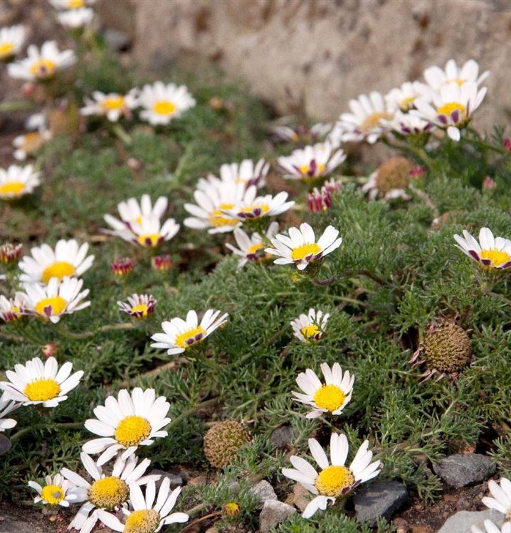 Stauden sind in der Gartengestaltung fast ein Muss, gibt es doch für nahezu jeden Standort die passenden Pflanzen. Die Ringblume ist zum Beispiel eine hervorragende Steingartenpflanze. Mit ihren radförmigen Blüten in Weiss ist die Ringblume von Mai bis Juni ein Blickfang. Dabei ist sie nicht nur eine Augenweide, denn ihre Blüten werden auch gerne von Bienen und anderen Insekten angeflogen. Ihre gefiederten, zerschlitzten Blätter tragen ebenso zu ihrer Wirkung bei. Sie sind grau-grün gefärbten. Da es sich um eine wintergrüne Staude handelt, sorgen die Blätter auch im Winter für farbliche Akzente.