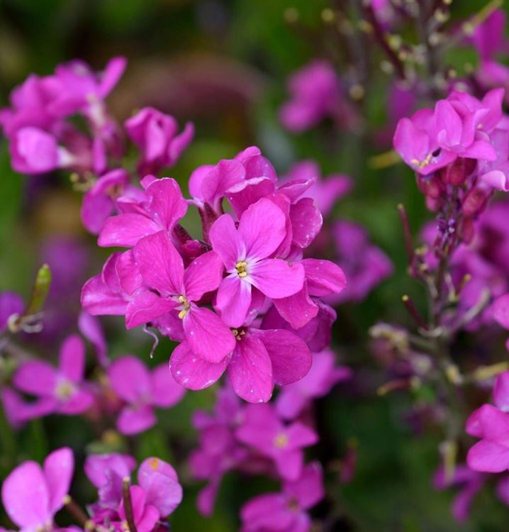 Die Blütezeit beginnt für die Garten-Gänsekresse 'Frühlingszauber' ab April. Dann trägt sie Trauben mit radförmigen, karminroten Blüten. Bis Juni hält die Blüte an.