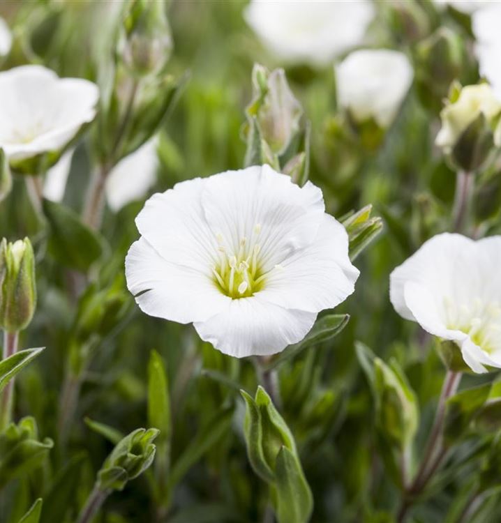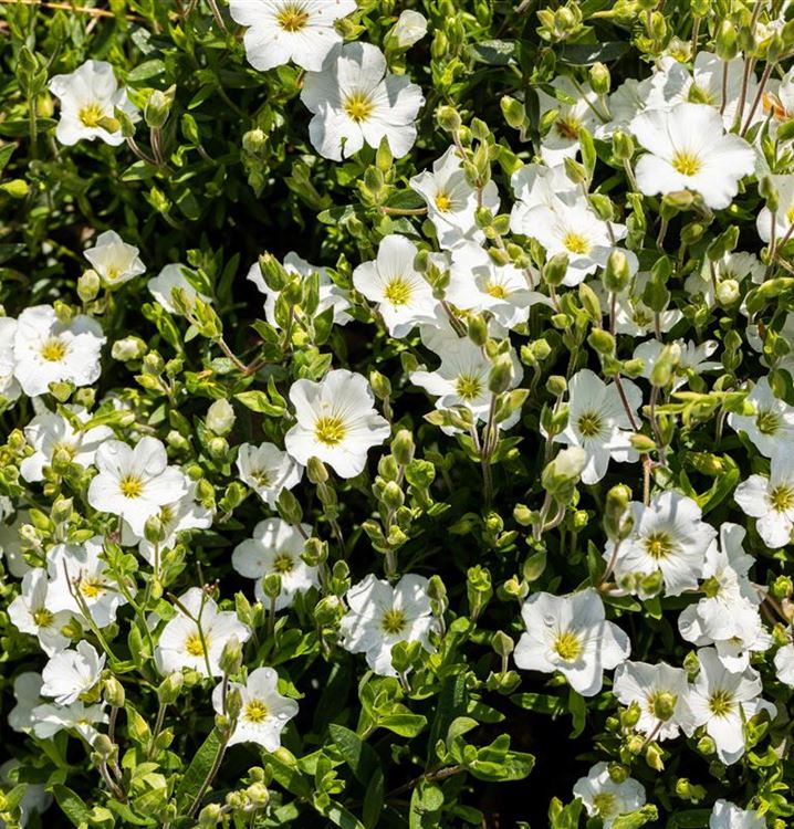 Die Blütezeit beginnt für das Berg-Sandkraut ab Mai. Dann trägt es schalenförmige, weisse Blüten. Bis Juli hält die Blüte an.