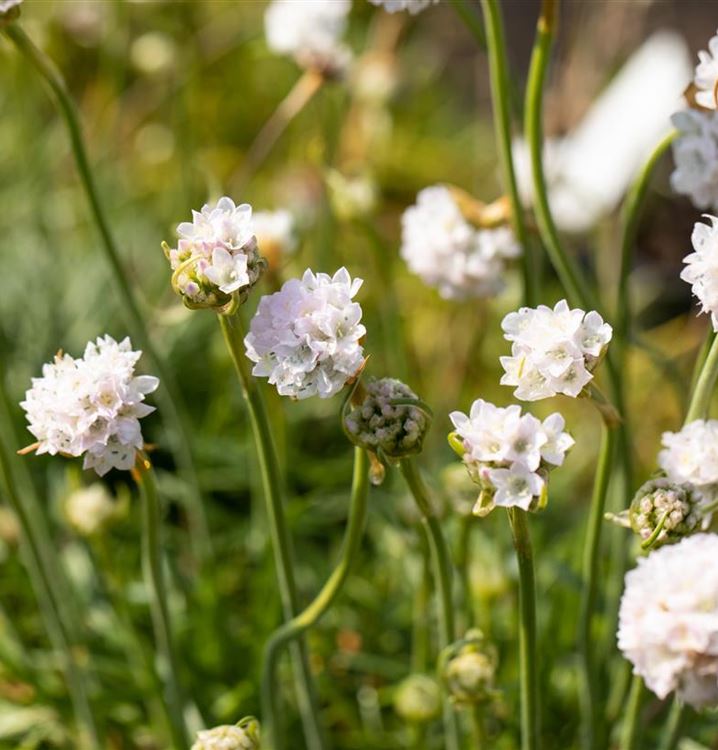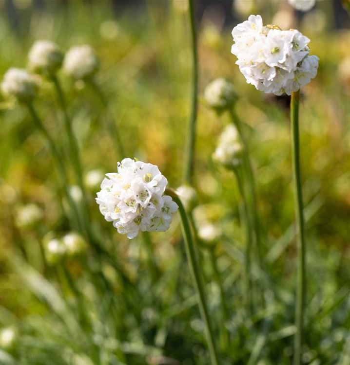 Die langen Stängel der Grasnelke erreichen gerne eine Höhe von etwa 15 cm und die darauf sitzenden kleinen, weissen, kugelförmigen Blütenköpfchen sind mit kaum einer anderen Blütenstaude zu vergleichen.