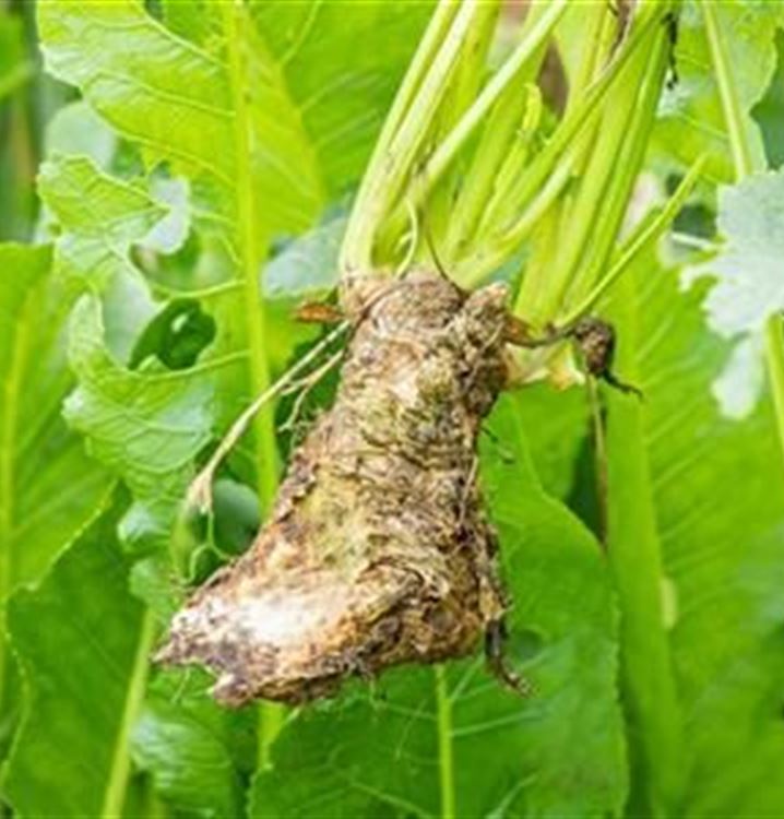 Sobald die saftig grünen Blätter ab September braun werden, beginnt die Erntezeit des Meerrettichs und reicht bis in den April hinein.