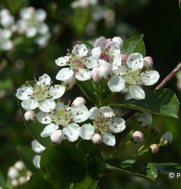 2-2,5m; Blüte: weiss, Mai; Frucht schwarz, attraktive Herbstfärbung, sonnig/halbschattig
