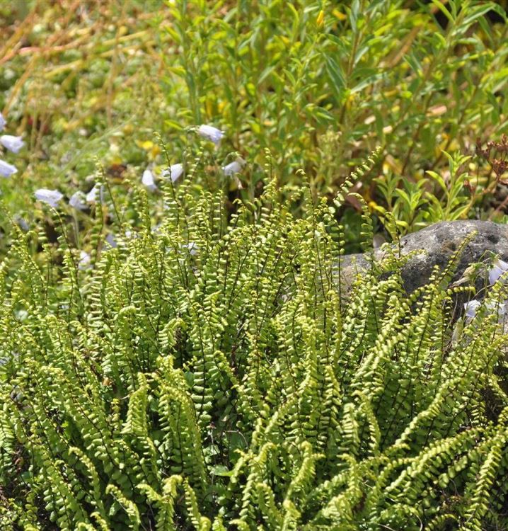 Nicht nur in der Gartengestaltung ist der Braunstielige Streifenfarn (Asplenium trichomanes) eine Bereicherung auch in Kübeln auf Balkon oder Terrasse macht er eine gute Figur. Denn dieser wintergrüne Farn ist mit seinen gefiederten Blättern in Mittelgrün der Blickfang in jedem Beet. Auch der typische, braune Blattstiel trägt dazu bei. Mit einer Wuchsgrösse von bis zu 15 cm bei einer Breite von etwa 20 cm gibt er ein überhängend wachsendes Exemplar ab. Am besten wächst der Braunstielige Streifenfarn an einem sonnigen bis halbschattigen Platz in durchlässiger und nährstoffreicher Erde.