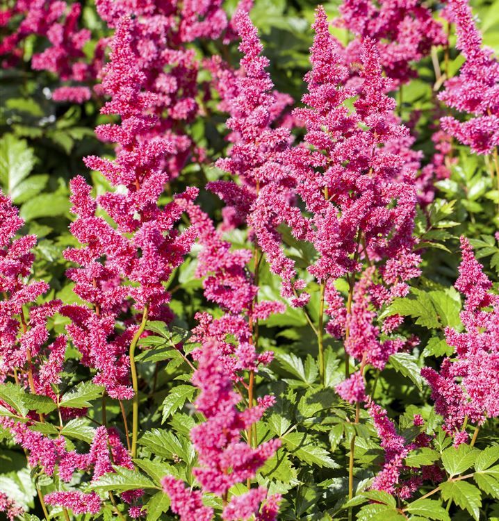Stauden sind in der Gartengestaltung fast ein Muss, gibt es doch für nahezu jeden Standort die passenden Pflanzen. Die Garten-Prachtspiere 'Red Sentinel' (Astilbe japonica 'Red Sentinel') ist zum Beispiel eine hervorragende Steingartenpflanze, genauso wie sie in Blumenkübeln eine gute Figur macht. Mit ihren Blüten in Karminrot ist die Garten-Prachtspiere 'Red Sentinel' von Juni bis Juli ein Blickfang. Ihre gefiederten Blätter tragen ebenso zu ihrer Wirkung bei. Sie sind dunkelgrün gefärbten.