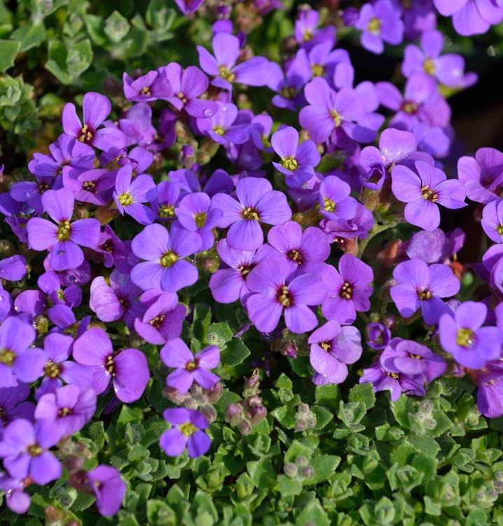 Stauden sind in der Gartengestaltung fast ein Muss, gibt es doch für nahezu jeden Standort die passenden Pflanzen. Das Garten-Blaukissen 'Hamburger Stadtpark' (Aubrieta x cultorum 'Hamburger Stadtpark') ist zum Beispiel eine hervorragende Steingartenpflanze, genauso wie es in Blumenkübeln eine gute Figur macht. Mit seinen radförmigen Blüten in Blauviolett ist das Garten-Blaukissen 'Hamburger Stadtpark' von April bis Mai ein Blickfang. Dabei ist es nicht nur eine Augenweide, denn seine Blüten werden auch gerne von Bienen und anderen Insekten angeflogen. Seine eiförmigen Blätter tragen ebenso zu seiner Wirkung bei. Sie sind mittelgrün gefärbten. Da es sich um eine immergrüne Staude handelt, sorgen die Blätter auch im Winter für farbliche Akzente.