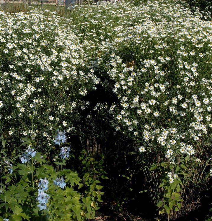 Pflanzenkombinationen machen sich immer besonders gut. Für die Nachbarschaft des Garten-Sternwolkenaster 'Snowbank' eignet sich zum Beispiel Hohe Flammenblume, Raublatt-Aster und Kissen-Aster.