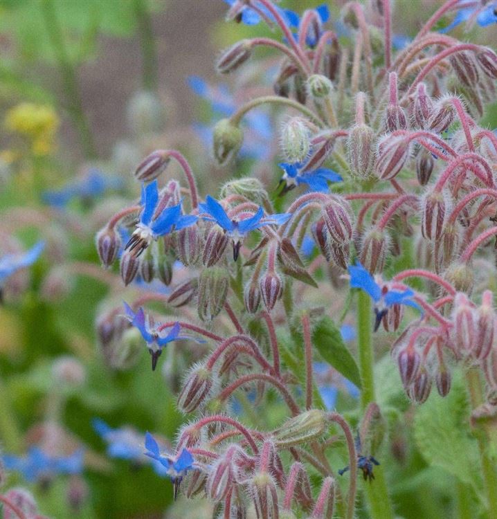 Die Blütezeit beginnt für den Borretsch ab Mai. Dann trägt er Trauben mit sternförmigen, blauen Blüten. Bis September hält die Blüte an.
