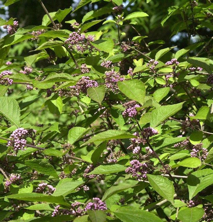 2-3m; Blüte: helllila, Juli-Aug.; violette Beeren; giftig, sonnig/halbschattig,