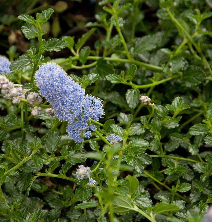 Im Einzelstand ist die Kriechende Säckelblume (Ceanothus thyrsiflorus var. repens) eine prächtige Erscheinung, aber auch eine Pflanzung in Kübeln auf Balkon oder Terrasse ist möglich. Ihre rundlichen Blätter machen sie unverwechselbar. Sie sind schön mittelgrün gefärbt. Da es sich um ein immergrünes Gehölz handelt, sorgen die Blätter auch im Winter für farbliche Akzente. Ihre Blüten, die sie von März bis August trägt, sind blau und verbreiten noch dazu einen angenehmen Duft. Übrigens sind die Blüten sehr beliebt bei Bienen und anderen Insekten.