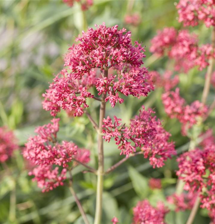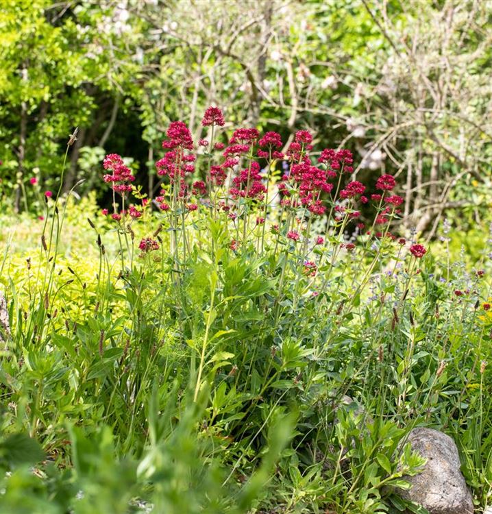 Stauden sind in der Gartengestaltung fast ein Muss, gibt es doch für nahezu jeden Standort die passenden Pflanzen. Die Rotblühende Garten-Spornblume 'Coccineus' (Centranthus ruber 'Coccineus') ist zum Beispiel eine hervorragende Steingartenpflanze. Mit ihren sternförmigen Blüten in Scharlachrot ist die Rotblühende Garten-Spornblume 'Coccineus' von Juni bis September ein Blickfang. Ihre lanzettlichen Blätter tragen ebenso zu ihrer Wirkung bei. Sie sind dunkelgrün gefärbten.
