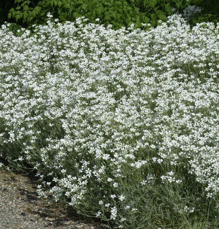 Stauden sind in der Gartengestaltung fast ein Muss, gibt es doch für nahezu jeden Standort die passenden Pflanzen. Das Niedrige Hornkraut (Cerastium tomentosum var. columnae) ist zum Beispiel eine hervorragende Steingartenpflanze und auch ein prima Bodendecker. Seine linealen bis lanzettlichen Blätter machen es mit ihrer Schmuckwirkung unverwechselbar. Sie sind wunderbar silbergrau gefärbt. Da es sich um eine immergrüne Staude handelt, sorgen die Blätter auch im Winter für farbliche Akzente. Dazu trägt das Niedrige Hornkraut von Mai bis Juni sternförmige bis schalenförmige Blüten in Weiss, die übrigens sehr beliebt bei Bienen und anderen Insekten sind.