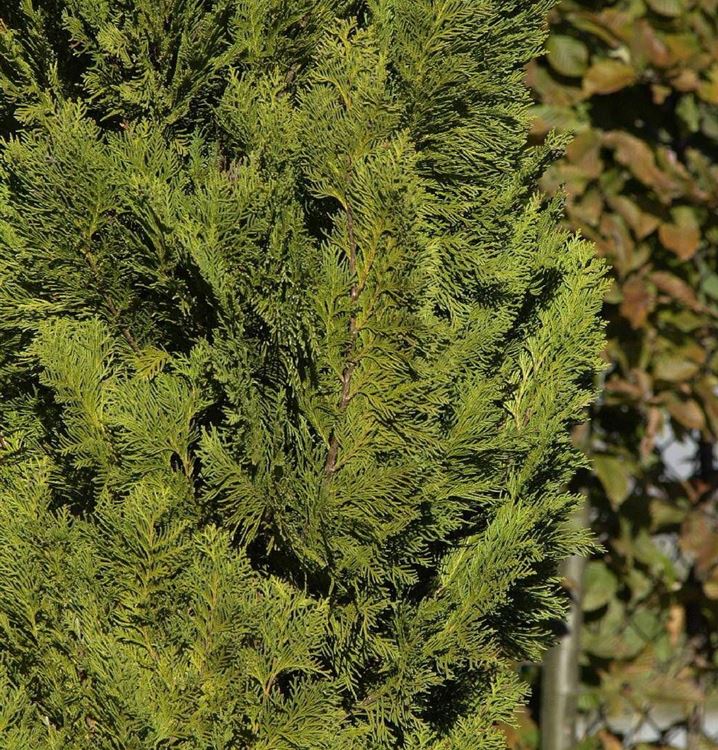 In durchlässiger und nährstoffreicher Erde an einem sonnigen Platz entwickelt sich die Gartenzypresse 'Green Pillar' zu einem schönen, säulenförmigen Grossbaum von bis zu 20 m Höhe und 3,5 m Breite.
