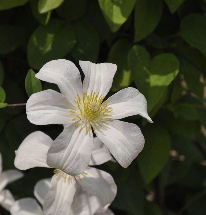 In durchlässiger, humoser, lockerer, sandiger und lehmiger Erde an einem sonnigen bis halbschattigen, windgeschützten Platz entwickelt sich die Italienische Waldrebe 'Huldine' zu einer schönen, rankenden Pflanze von bis zu 6 m Höhe und 3,5 m Breite.