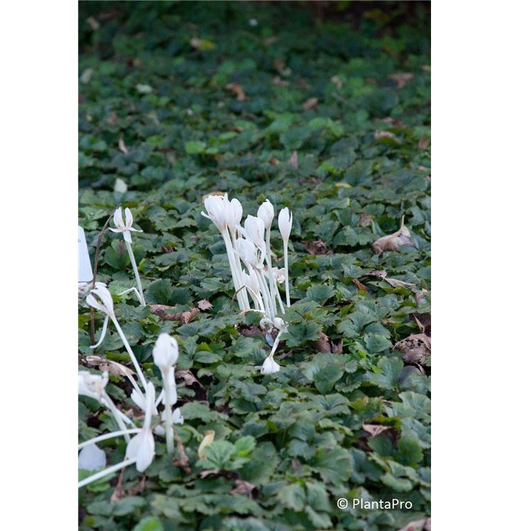 August - September wird die Garten-Herbst-Zeitlose 'Album' gepflanzt, dabei kommen die Zwiebeln bzw. Knollen etwa 8 cm bis 10 cm tief in die Erde.