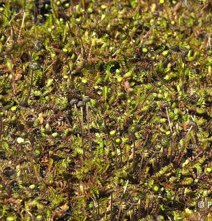 0.1 m; Blüte: gelbgrünlich, Juli-Aug.; trittfester Bodendecker, sonnig