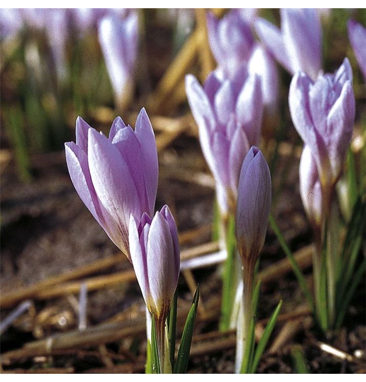 August - Dezember wird der Toskanischer-Krokus 'Rosalind' gepflanzt, dabei kommen die Zwiebeln bzw. Knollen etwa 8 cm bis 10 cm tief in die Erde.