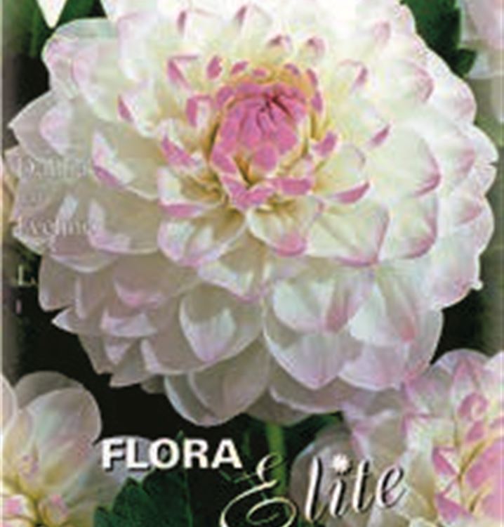 Die Blütezeit beginnt für die Pompon-Dahlie 'Eveline' ab Juli. Dann trägt sie ballförmige, weiss-rosafarbene Blüten. Bis Oktober hält die Blüte an.