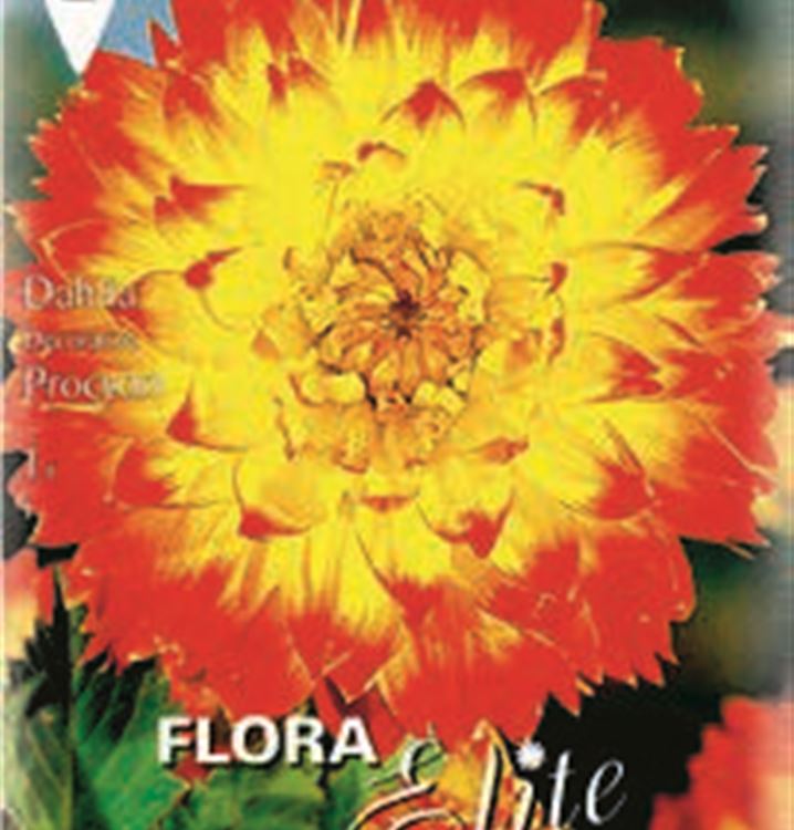 Die Blütezeit beginnt für die Dekorativen Dahlie 'Procyon' ab Juli. Dann trägt sie körbchenartige, gelb-rote Blüten. Bis Oktober hält die Blüte an.