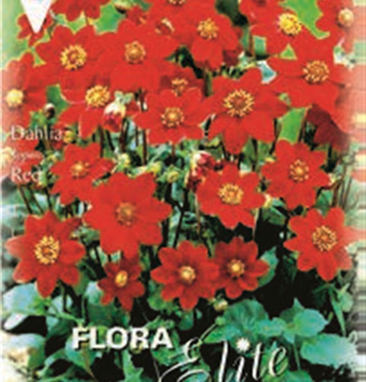 Die Blütezeit beginnt für die Dahlie 'Topmix Red' ab Juni. Dann trägt sie anemonenartige, rote Blüten. Bis September hält die Blüte an.