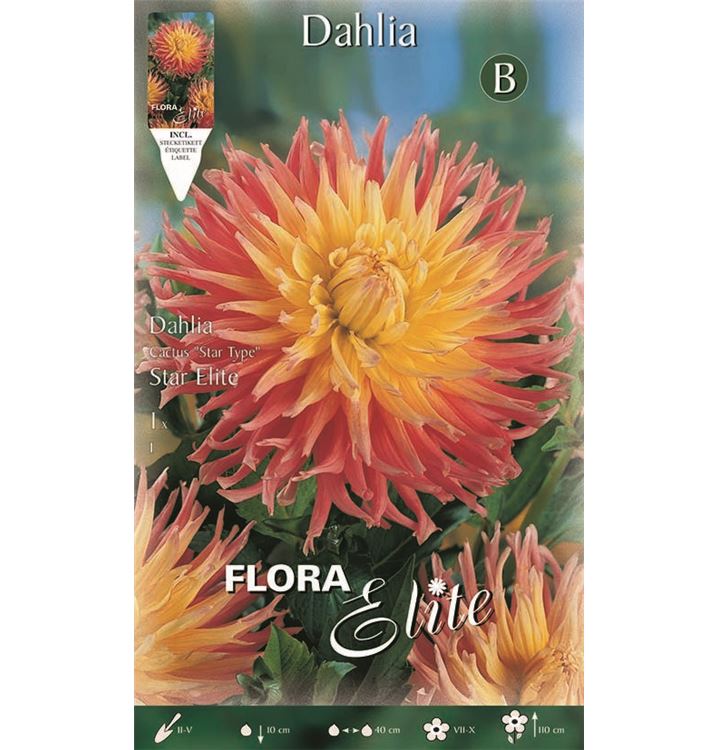 In schön bepflanzten Rabatten, aber auch in Kübeln auf der Terrasse oder in Kästen auf dem Balkon ist die Kaktus-Dahlie 'Star Elite' (Dahlia 'Star Elite') immer wieder gern gesehen. Mit ihren körbchenartigen Blüten in Zweifarbig trägt die Kaktus-Dahlie 'Star Elite' von Juli bis Oktober auf ihre Weise zur Gestaltung bei.
