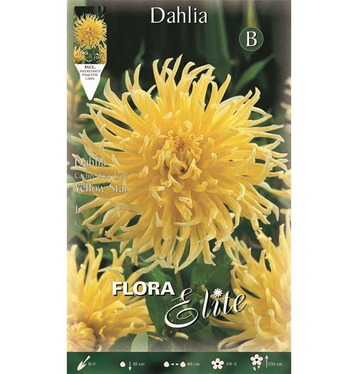 März - Juni wird die Kaktus-Dahlie 'Yellow Star' gepflanzt, dabei kommen die Zwiebeln bzw. Knollen etwa 8 cm bis 12 cm tief in die Erde.