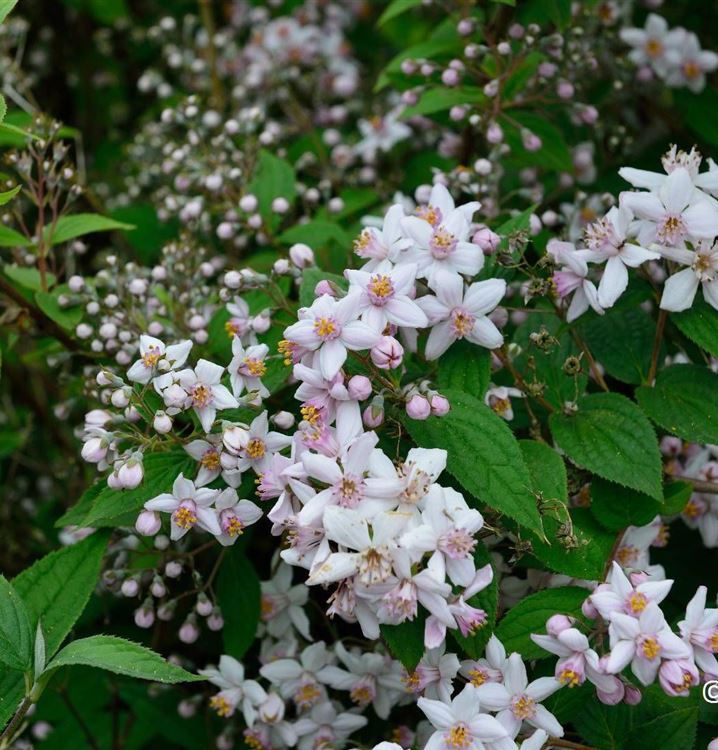 Für den Einsatz als Heckenpflanze ist die Rosendeutzie 'Mont Rose' (Deutzia x hybrida 'Mont Rose') ideal, sie ist aber auch ein prächtiger Solitär im Garten. Ihre eiförmigen, gesägten Blätter machen sie unverwechselbar. Sie sind schön dunkelgrün gefärbt. Ihre schalenförmigen Blüten, die sie im Juni trägt, sind hellrosa.