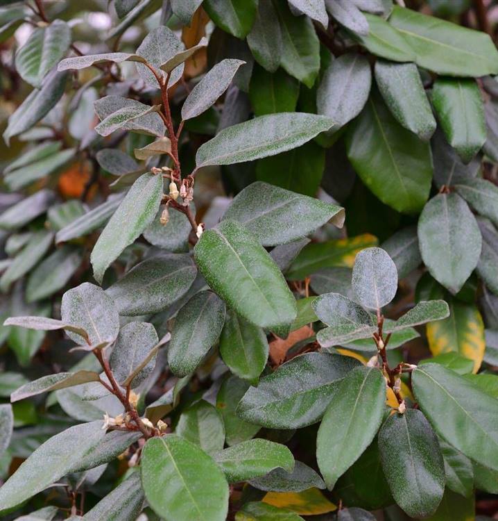 Im Einzelstand ist die Wintergrüne Ölweide (Elaeagnus x ebbingei) eine prächtige Erscheinung, die auch in kleineren Gärten ihren Platz findet. Ihre glänzenden, ledrigen, lanzettlichen Blätter machen sie mit ihrer Schmuckwirkung unverwechselbar. Sie sind schön dunkelgrün gefärbt. Da es sich um ein wintergrünes Gehölz handelt, sorgen die Blätter auch im Winter für farbliche Akzente. Ihre röhrenförmigen Blüten, die sie von September bis November trägt, sind cremeweiss und verbreiten noch dazu einen starken Duft.