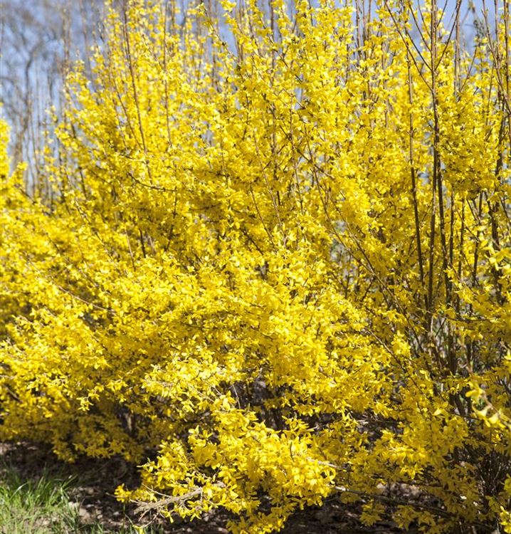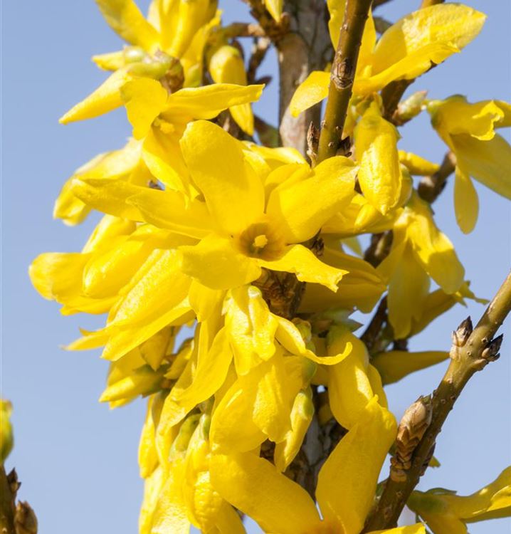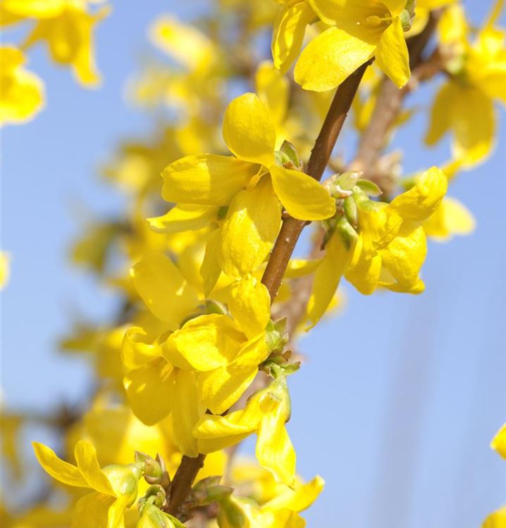 Die Blütezeit beginnt für die Forsythie 'Week End'® ab März. Dann trägt sie Rispen mit, gelben Blüten.
