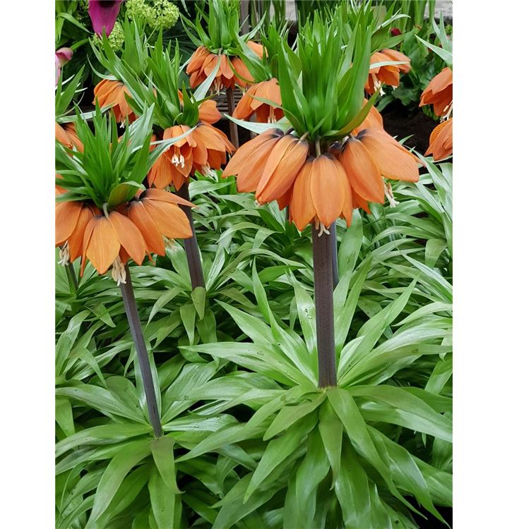 In schön bepflanzten Rabatten, aber auch in Kübeln auf der Terrasse oder in Kästen auf dem Balkon ist die Rote Kaiserkrone 'William Rex' (Fritillaria imperialis 'William Rex') immer wieder gern gesehen. Mit ihren Blüten in Orange-rot trägt die Rote Kaiserkrone 'William Rex' von April bis Mai auf ihre Weise zur Gestaltung bei. Als Grundlage dienen dabei ihre linealen Blätter in Dunkelgrün.