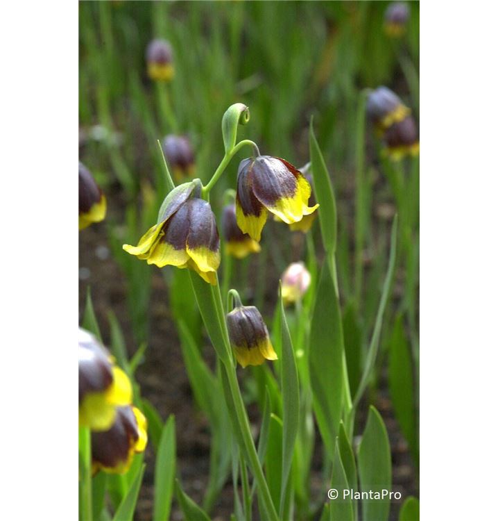 Mindestabnahme 10 Stück grosse dunkelrot-purpurfarbene Blüten mit breitem hellgelben Rand; an der Innenseite sind sie glänzend hellgelb gefärbt, 10-20cm, April-Mai