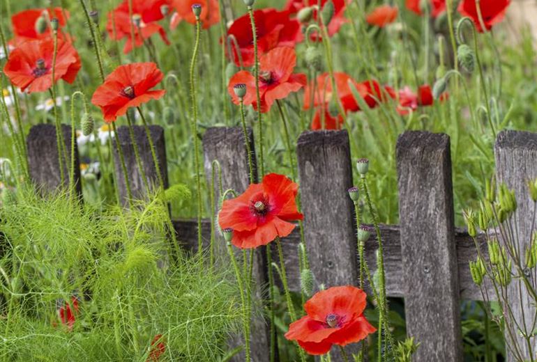 Damit kommen wir zu den konkreten Wirkungsweisen, die den verschiedenen Farben innewohnen. Die stärkste Wahrnehmung kann Rot für sich verbuchen. Mit seiner automatischen Signalfunktion wirkt es grossflächig eingesetzt zu aufdringlich. Aber geschickt platziert, kann die Farbe wunderbare aktivierende Akzente setzen. Die intensiven Blüten des Mohns, die korallenroten Früchte der Berberitze, das herrliche Laub der Blutbuche, der exotische Feuerahorn und die ausdrucksstarken Triebe des Hartriegels im Winter sind einige Beispiele.