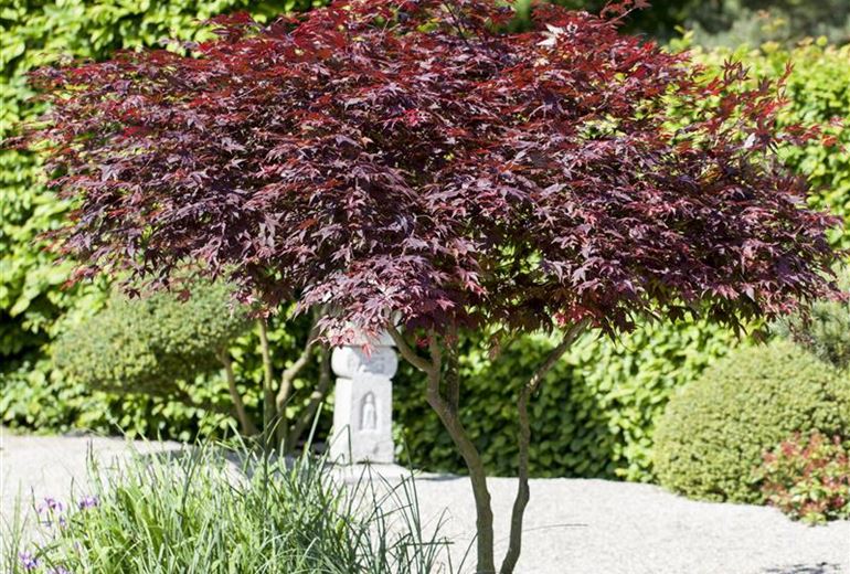 Gehölze, sowohl Sträucher, als auch Bäume, gehören in den japanischen Garten wie der Kaiser nach China. In der japanischen Kultur stehen Gehölze für das Sinnbild des Lebens und egal ob Nadel- oder Laubgehölz, ein Strauch oder Baum darf im japanischen Garten nicht fehlen. Idealerweise kombiniert man Nadel- und Laubgehölze gekonnt und schafft so verschiedene Bereiche im japanischen Garten. Besonders beliebt und passend zum japanischen Flair sind Formgehölze. Klassische Laubgehölze für den japanischen Garten sind Azalee, Fächerahorn, Rhododendron und die japanische Zierkirsche. Mindestens einer dieser Vertreter darf im japanischen Garten nicht fehlen. Aber auch Bambus, Kiefer oder Buche passen gut in das japanische Konzept und runden das Gesamtbild ab. Was auf gar keinen Fall fehlen darf, ist Moos. Was bei vielen Gartenbesitzern eine ungeliebte Begleiterscheinung im Herbst ist, ist für Fans des japanischen Gartens ein Sinnbild von Dauerhaftigkeit und eines langen Lebens. Durch seine besonderen Wuchseigenschaften und aufgrund der Tatsache, dass es besonders hartnäckig ist, wächst Moos auf nahezu jedem Untergrund, wie arm er auch sein mag. Bewusst gepflanztes Moos ist also ein absolutes Muss in jedem japanischen Garten.
