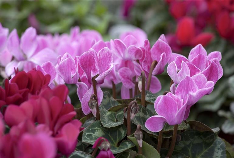 Am bekanntesten sind die Alpenveilchen als Topfpflanze für die Wohnung. Hier blühen sie in vielen Farben und erfreuen auch in der kalten Jahreszeit ihren Besitzer. Doch auch nach draussen dürfen sie gepflanzt werden – jedoch sind die üblichen Hybriden nicht winterhart und daher nur im Sommer für den Garten geeignet. Allerdings gibt es besondere Arten, die selbst harte Fröste überdauern. Dazu zählt beispielsweise das Anatolien-Alpenveilchen. Wer diese Kulturart bevorzugt, sollte möglichst kleine Knollen aus Kulturbetrieben kaufen und am Standort nicht den Boden aufhacken. So bilden die Alpenveilchen nach einer Weile dicke Teppiche mit herrlichen Blüten.