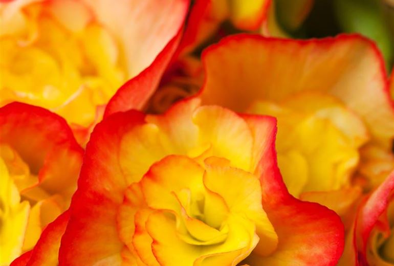 Im Garten findet man hierzulande meist Knollen-Begonien. Sie entstanden aus Kreuzungen knollenbildender Arten aus Südamerika. Es gibt sie in den verschiedensten Formen. Grossblumig mit einfachen Blüten, kraus oder fransig, zur Hälfte oder ganz gefüllt. Auch hängende Knollen-Begonien erfreuen sich grosser Beliebtheit. Sie zieren perfekt Balkon und Terrasse in Blumenampeln. Diese Begonien werden der Pendula-Gruppe zugeordnet. Multiflora-Begonien dagegen erkennen Sie am besten an ihrem kompakten Wuchs und einer vollen Blütenpracht in Gelb, Rot, Rosa oder Weiss. Auch bei diesen Begonien können Sie zwischen ungefüllten oder gefüllten Blüten wählen.