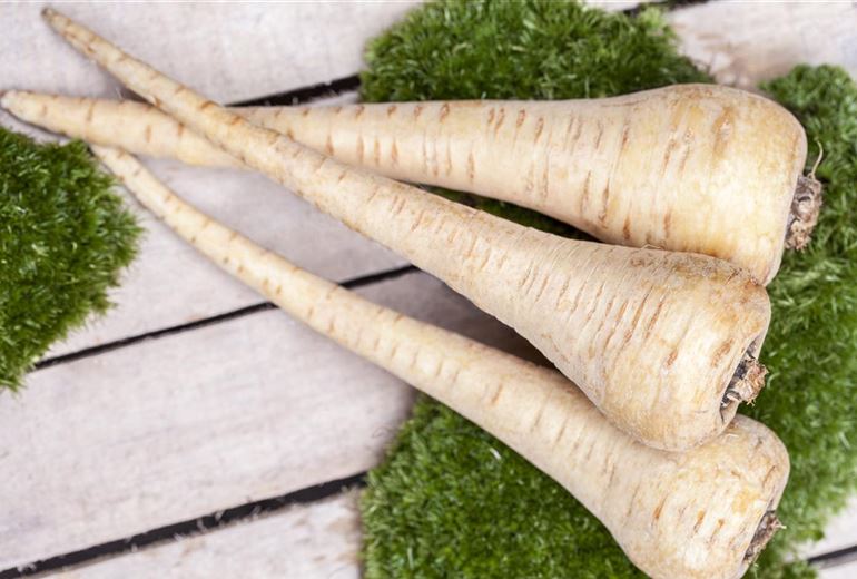 Die meisten Wurzelgemüse werden im Herbst geerntet, doch die Mairübe ( Brassica rapa var. rapifera subvar. majalis ) ist ein typischer Frühsommergenuss. Von Mai bis August wird ausgesät, ab Mai geerntet. Die schneeweissen, runden Rüben sind bei einer Dicke von fünf bis sechs Zentimeter zart und mild im Geschmack. Ein klassisches Herbstgemüse ist die Pastinake ( Pastinaca sativa ). Nachdem sie schon vor Jahrtausenden verzehrt wurde, verdrängten Kartoffeln und Möhren sie im 18. Jahrhundert aus den Gärten und von den Speiseplänen. Jetzt ist sie zurück und bereichert unsere Küche mit ihrem süsslich-herben, erdigen und ein wenig sellerieähnlichen Aroma. Ausgesät wird von April bis Mai ins Freiland, geerntet ab Oktober. Köstlich in Suppen oder als Schmorgemüse. Der Pastinake sehr ähnlich ist die Wurzelpetersilie ( Petroselinum crispum ssp. tuberosum , die Sorten ’Konika’ und ’Halblange’); die Aussaat sollte nicht zu früh erfolgen, idealerweise Ende April/Anfang Mai in den abgetrockneten Boden. Ein echter Schatz aus vergangenen Tagen ist die Rote Rübe ( Beta vulgaris ) ’Ägyptische Plattrunde’, die seit 1868 bis heute im Handel ist und sich bis weit in den Winter hinein lagern lässt. In dieser Liste nicht fehlen dürfen die Teltower Rübchen ( Brassica rapa f. teltowiensis ), die schon Goethe gemundet haben.