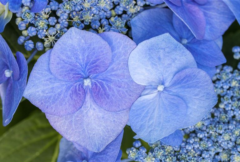 Unter den Hortensienarten ist die Bauern- oder Gartenhortensie in deutschen Gärten besonders beliebt. Ihr schirmartiger Flor erscheint auf Stängeln mit bis zu zwei Metern Höhe. Die durstige Zimmer- und Beetpflanze braucht mindestens Halbschatten, Mittagssonne schadet ihr. Sie blüht in Weiss und Rosa, das sich bei saurer Erde in Blau verwandelt. Diese Wandlung vollzieht auch die filigrane Tellerhortensie. Ihr namensgerechter flacher, tellerartiger Doldenflor zeigt sich in den Farben Weiss, Blau, Rot und Rosa. Viele Blüten erscheinen im bicoloren Outfit. Die schattenliebende Pflanze begnügt sich mit einem Meter Höhe. Beide Hortensienarten vervollständigen den Bauerngarten und sind perfekt für den Naturgarten geeignet.
