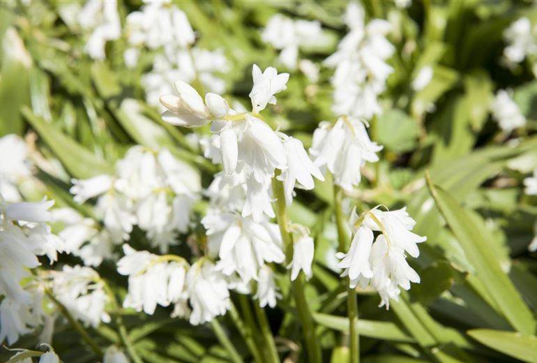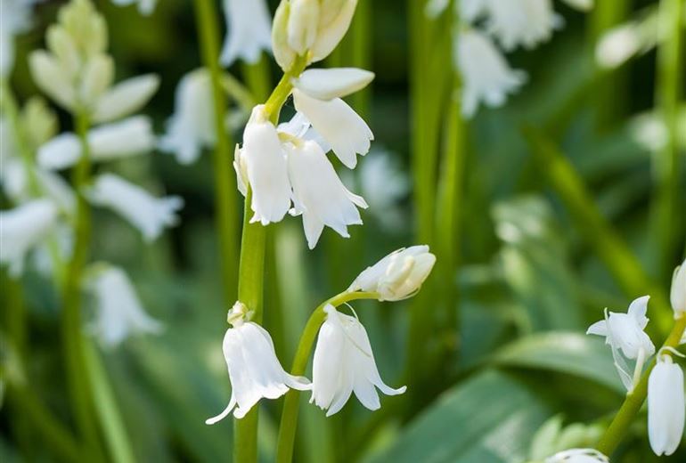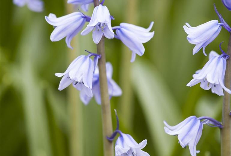 Von April bis Juni zeigt sich die Glockenblüte. In lockeren Trauben an aufrechten Stielen ragt sie empor und lässt keinen Zweifel an ihrer wild-charmanten Eleganz. Damit sich die Pflanze gut entwickeln kann, sollten Sie etwas Vorsorge betreiben. Wühlmäuse lieben Blumenzwiebeln, weshalb das Spanische Hasenglöckchen beim Einpflanzen mit einem engmaschigen Pflanzkorb geschützt werden sollte. Auch ein Pflanzabstand von 10 bis 15 Zentimetern ist einzuhalten, damit die Pflanze genügend Platz hat, um sich zu entwickeln. Dann gedeiht das Hasenglöckchen prächtig und gestaltet einen weichen Übergang zum Sommer. Wenn die Sommerblumen sich erheben, verabschiedet sich die wilde Hyazinthe. Sobald ihr Laub im Herbst verwelkt, können Sie die Pflanze teilen.