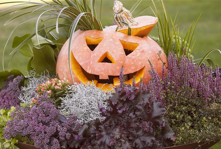 Will man punktgenau auf den 31. Oktober hinarbeiten, dann findet man auch ausgesprochene Halloween-Kürbisse. Dazu gehört beispielsweise der „Early Harvest“. Wenn man sein leckeres Inneres ausgeschlachtet hat, kann man ihn ganz leicht in einen Totenkopf verwandeln.