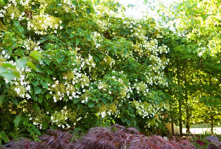 Kletterpflanzen machen Schatten im Garten grün! Auch wenn die Auswahl an Kletterpflanzen, die sich auch im Schatten wohl fühlen, eher gering ist: es gibt sie, die Kletterpflanzen, die selbst in die schattigste Ecke ein bisschen Farbe bringen. Die Kletter-Hortensie mag den Schatten wie ihre am Boden gebliebenen Schwestern viel lieber, als die Sonne. Mauern mit bis zu 10 Metern Höhe sind für die Kletter-Hortensie dank ihrer Haftwurzeln kein Problem und so lassen sich schattige Hauswände perfekt begrünen. Aber auch die Grossblättrige Pfeifenwinde, der Wilde Wein und Efeu sind eine gute grüne Farbquelle im Schatten.