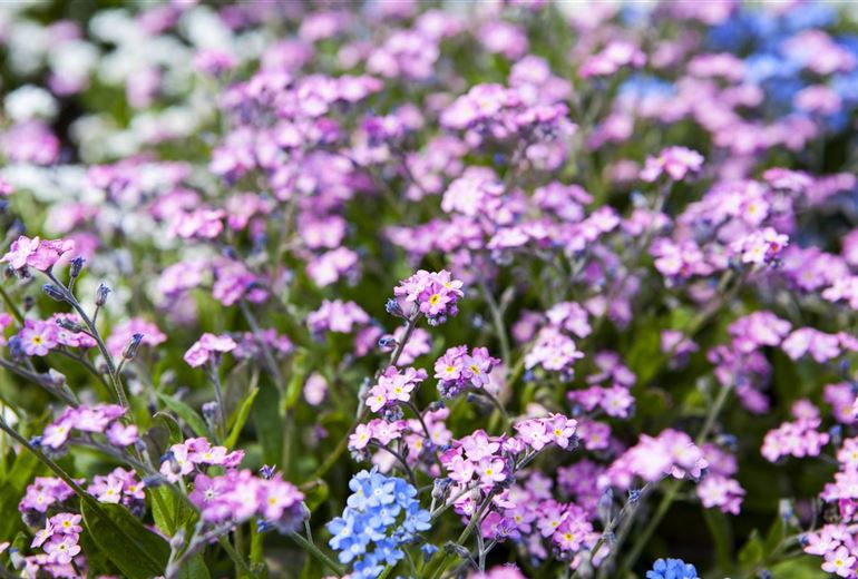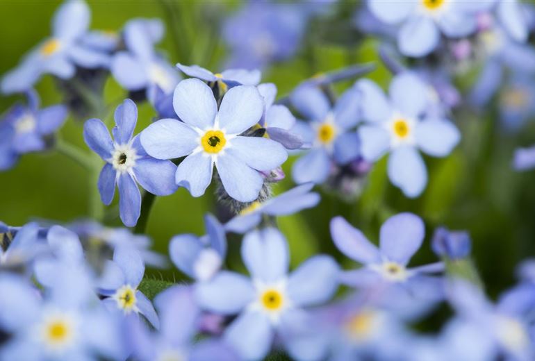 Ein Vergissmeinnicht im Beet weckt immer wieder romantische Gefühle, so sehr ist es im Laufe der Zeit mit den Begriffen Liebe und Treue zusammengewachsen. Es gibt heute einige Dutzend Arten. Neben vielen Schattierungen von Himmelblau bis zu einem deutlich kräftigeren Ton sind auch Varianten in Weiss und Rosa dabei. Mit einem Sträusschen als Mitbringsel macht man jedem eine Freude. Zum Glück nimmt das Vergissmeinnicht im Beet es nicht übel, wenn man ein paar Stängel stibitzt. Ganz im Gegenteil verteilt es seine Samen grosszügig in der Umgebung.