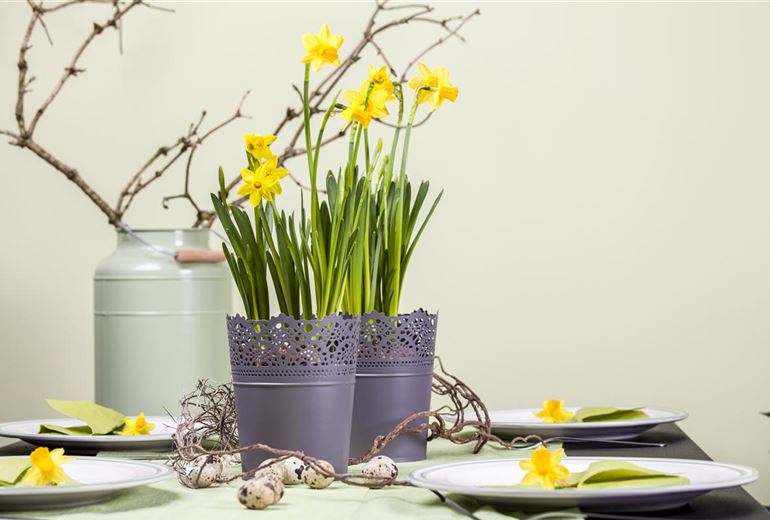Je nach Pflanzenart brauchen die Zwiebeln 4 bis 6 Wochen bis sie im Haus blühen. Schon beim Antreiben können Sie darauf achten, schöne Blumenkombinationen zu pflanzen. Eine harmonische Farbzusammenstellung macht viel aus. Die Blüte hält etwa ein bis zwei Wochen an. Ihre Lebensdauer richtet sich nach der Zimmertemperatur. Je wärmer es ist, desto schneller entwickeln sich die Blumen und verblühen. Mehr als 20 °C sollten nicht herrschen. Selbst wenn Kälte die Lebensdauer fördert: Frost vertragen die Frühblüher nicht. Deshalb werden sie auch erst nach dem letzten Frost ausgepflanzt, sofern Sie die Pflanzen im nächsten Jahr im Garten wieder blühen sehen wollen.