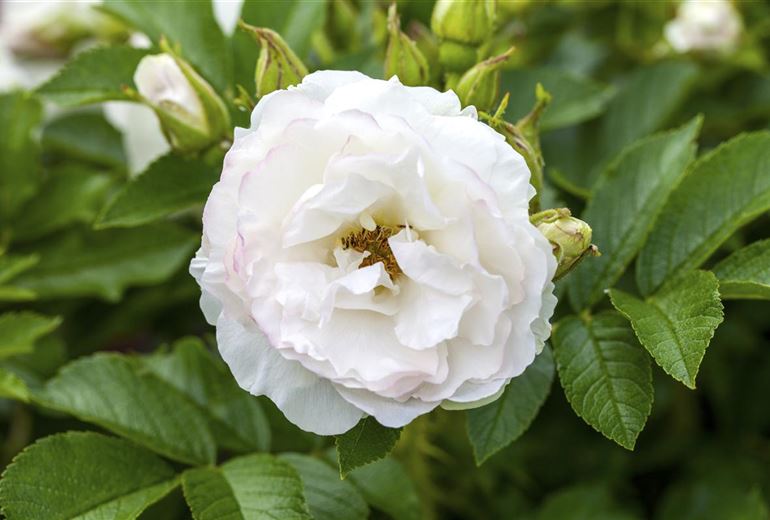 Mittlerweile sind historische Rosen wieder voll im Trend. Und das nicht nur, weil sie Nostalgie in den Garten bringen, sondern weil sie auch die ein oder andere sehr beliebte Eigenschaft haben. Viele der neu gezüchteten Rosen duften nicht mehr. Historische Rosen hingegen haben einen sehr intensiven Geruch und tauchen den Garten in eine Rosenwolke. Viele Züchter haben sich mittlerweile darauf spezialisiert, neue Züchtungen mit den Eigenschaften der historischen Rosen zu züchten. Bei manchen Sorten der historischen Rosen gehört neben dem Duft auch eine besondere Wuchsform zu den beliebten Eigenschaften. Historische Rosen wachsen meist zu sehr dichten Sträuchern heran, die viele hübsche Blüten tragen. Diese Eigenschaften, der Duft und der dichte Wuchs, sind bei Rosenliebhabern besonders beliebt. Da nimmt man auch gerne in Kauf, dass historische Rosen nur einmal im Jahr blühen. Dafür dann aber umso hübscher, intensiver und duftender als die neuen Züchtungen. Und auch wenn die Blüte nur von Juni bis Juli anhält, ist jede einzelne Blüte etwas ganz besonderes. Historische Rosen haben oft eine stark gefüllte Blüte, die an längst vergangene Zeiten erinnert.