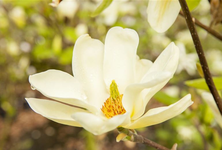 Vom kleinsten bis zum grössten Garten sind es herrliche Blüten, die die Stimmung heben und das Herz des Betrachters freudig höher schlagen lassen. Da bieten sich als Erstes die sensiblen Magnolien mit ihrem grossen, charmanten Flor an. Mit ihrer fernöstlichen Schönheit gesellt sich gern die empfindsame Japanische Kirsche dazu. Deutlich robuster sind Wildrosen, die mit rustikaler und bestechend klarer Blütenpracht daherkommen. Immer wieder wunderbar ist jede Art von Flieder, der die Ästhetik der Romantiker bedient. Anpassungsfähig und elegant sind sowohl die Kolkwitzie wie auch der Schneeball