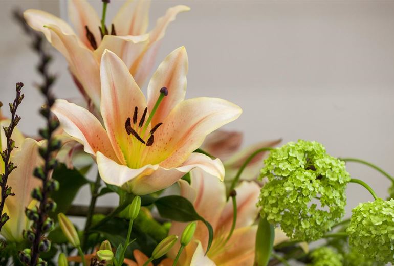 Schon die alten Griechen und Römer wussten die Lilie im Garten zu schätzen. Das macht sie zu einer der ältesten Gartenpflanzen, die bis heute kultiviert werden. Dank ihrer eleganten und auffällig schönen Blüte hat sie bis zum heutigen Tag nichts an Popularität verloren. Trotz ihrer charakteristischen Form sind Lilienblüten sehr vielseitig. Aufrecht oder seitlich in Trauben, Rispen oder Dolden – die Blüten stehen ganz unterschiedlich. Auch ihre Form gibt es in den verschiedensten Variationen von becher- und schüsselförmig zu Glocken-, Trompeten- oder Trichterform. Lilien sind ein wahrer Blickfang.